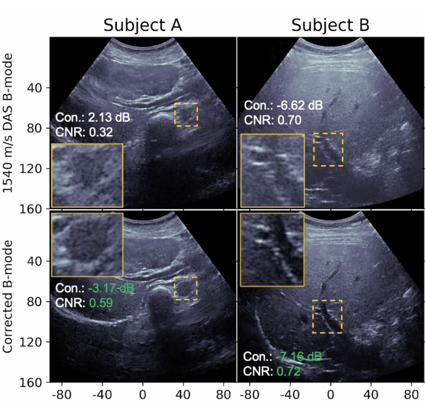 Benjamin N. Frey, Robin van Velzen, Peter Hedman, Jihye Baek, Hoda S. Hashemi, Martin Schneider, Sergio J. Sanabria, Jeremy J. Dahl, IEEE IUS, 2025   (Best Student Poster Award) project page / video Curvilinear ultrasound image autofocusing for aberration correction via sound speed estimation. |