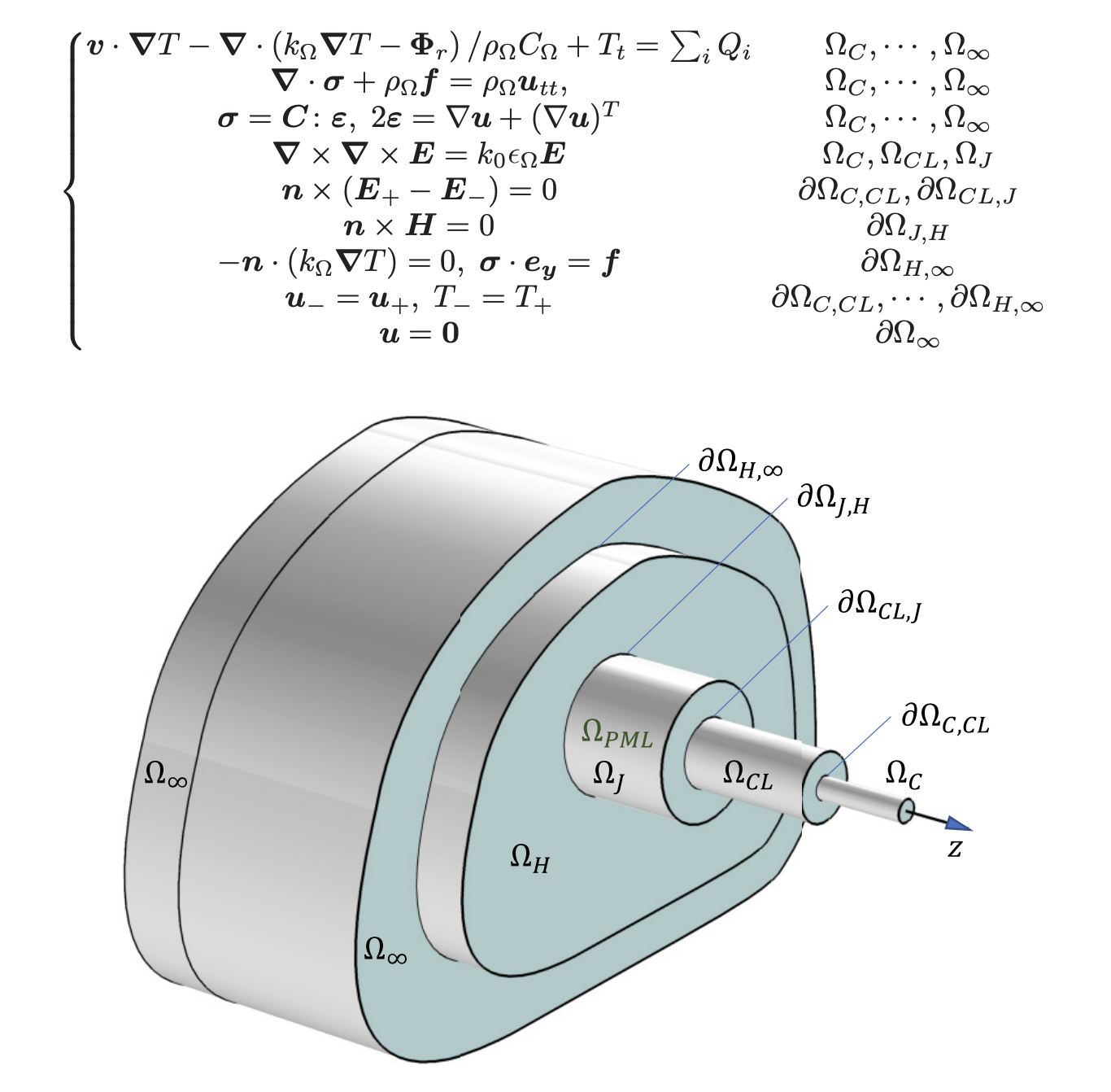 Benjamin N. Frey, Patrick Snyder, Klaus-Peter Ziock, Ali Passian, PRE, 2021 github / paper The response of an FBG sensor to arbitrary external stimuli represents a multiphysics problem without a known analytical solution despite the growing use of FBGs in classical and quantum sensing and metrology. Here, we study this problem by first presenting a solid mechanics model for the thermal and elastic states of a stratified material. Finally, we employ the computed surface stress and temperature distributions along the grating to analytically calculate the Bragg shift. |