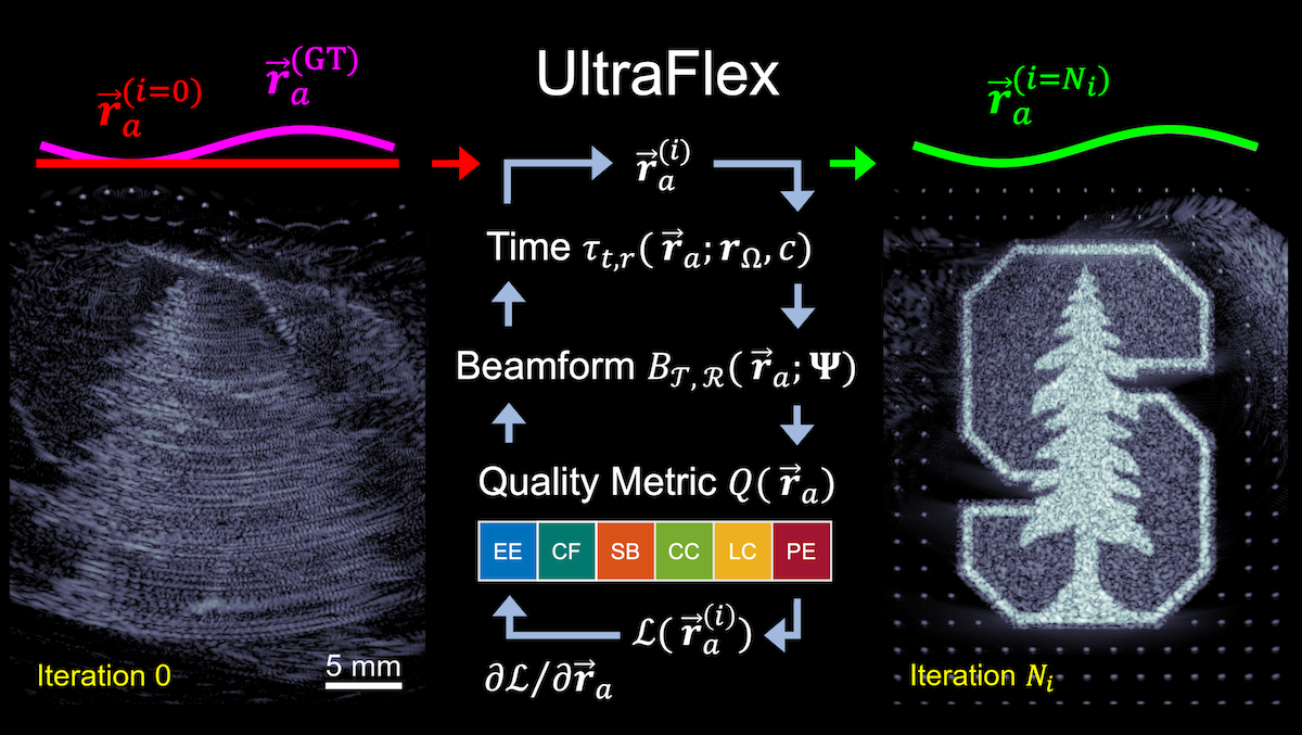 Benjamin N. Frey, Dongwoon Hyun, Walter Simson, Louise Zhuang, Hoda S. Hashemi, Martin Schneider, Jeremy J. Dahl, IEEE T-UFFC, 2025 project page / journal UltraFlex is a framework for iterative model-based ultrasonic flexible-array shape calibration. |